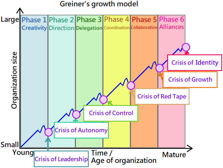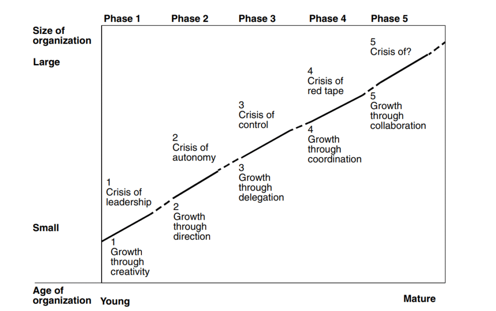 Greiner wskazuje że podstawowym objawem kryzysu wzrostu jest utrata zdolności do kontrolowania procesów. Lider firmy przestaje rozumieć co dokładnie dzieje się w organizacji. Dane są rozproszone, decyzje podejmowane są chaotycznie, a ludzie nie wiedzą kto za co odpowiada. Gdy rośnie liczba pracowników, dotychczasowe metody zarządzania przestają działać.